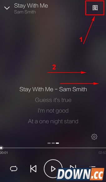 4.若要退出歌词显示,可点击右上角的【图】或向右滑动歌词即可