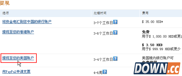 PayPal有四种出金方式,这里选择“提现至您的美国帐户”