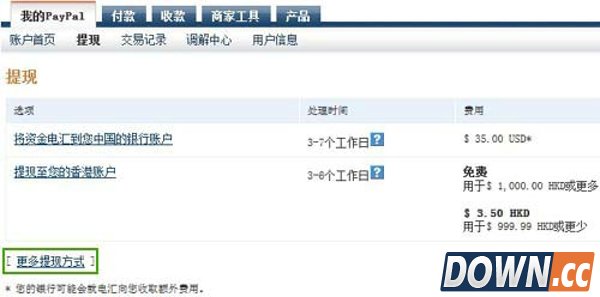 在PayPal选“更多提现方式”