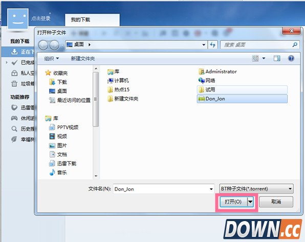 3、再点击《打开BT种子文件》然后选择你要下载的文件点击《打开》