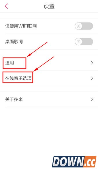 3.可进行简单地设置,详细设置可选择【通用设置】和【在线音乐选项】