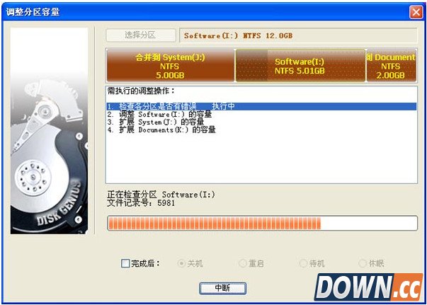 3、无损分区调整过程中,请不要使用其他软件对磁盘进行读写操作。事实上,DiskGenius在进行无损分区调整过程中,会自动锁住当前正在调整大小的分区。