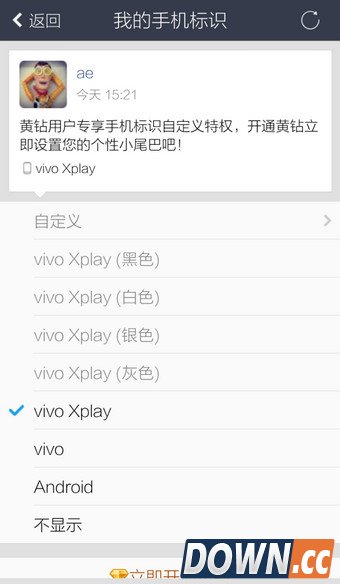 注:要想使用手机QQ发动态时显示手机型号,需配合QQ空间客户端使用。