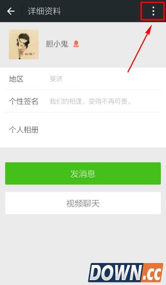 1.进入这个人聊天,点击右上角的【头像】