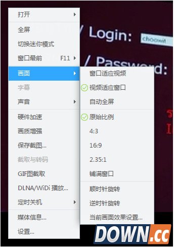 2、调节比例:鼠标单击右键-画面-选择对应的画面比例