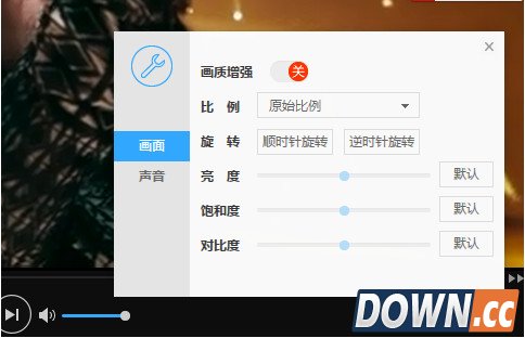 3、调节画面:点击播控条下方的播放效果设置按钮,可以调整画面的比例、亮度、对比度等