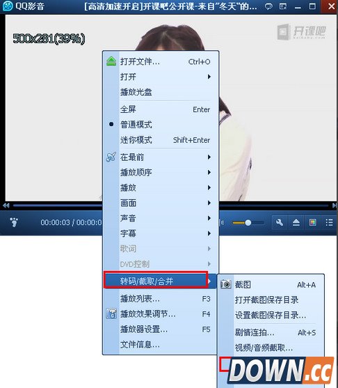 1、首先我们打开QQ影音播放器,然后代开你的要截图的视频文件,然后右击QQ影音播放的视频界面,选择如下图“动画 GIF截取”