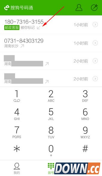 1.在搜狗号码通拨号界面下长按号码