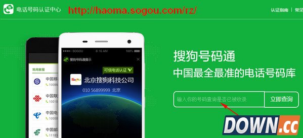 1.进入搜狗号码通认证中心,输入号码
