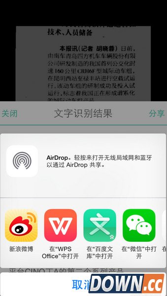 6、再点下面的OCR,所有图片上的文字都被识别为可以编辑的了。然后我们点击分享,就可以把识别后的信息分到邮件,或者其他程序中打开编辑了。