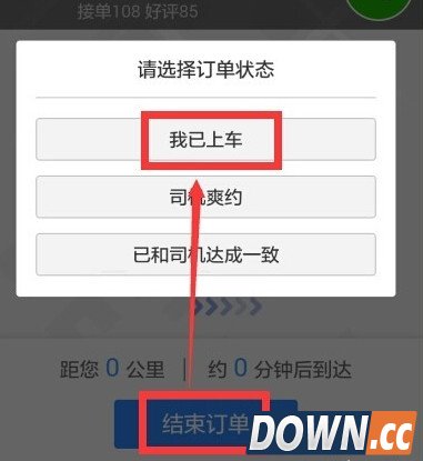 9、点击结束订单 然后点击我一上车即可完成