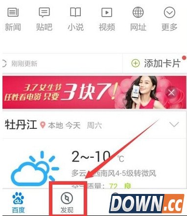 1、首先我们点击打开手机百度,点击发现