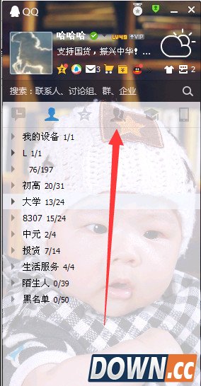 1、打开并登录qq,点击群/讨论组的标识