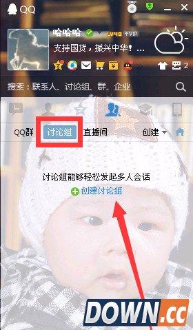 3、也可以点击讨论组,然后选择创建讨论组