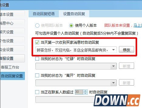 我们再买东西的时候很多都会问:亲,在么?在别人回复了一大串的信息后。如果你再问就没有了,这就是我们设置首次此人来消息回复一次,那么我们该怎么设置
