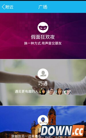 在广场页面中,会出现三个社交平台,分别是:假面狂欢夜、巧遇和漫游三个社交方式,接下来,我将向大家一一介绍这三个平台该怎么玩。