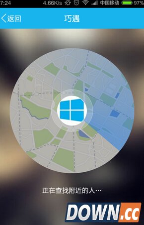 接下来,便是巧遇页面,关于巧遇怎么玩呢,其实也是很简单的,在巧遇页面,我们会看到附近筛选出来的若干QQ用户,然后将将会展现出他们的头像