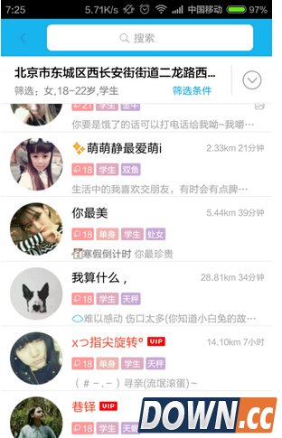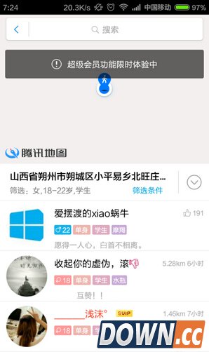 等你选择完毕之后,你就会看到附近中的QQ用户已经发生了变化,是的,这就是按照你漫游的地区筛选出来的用户,哈哈,这三个实在是交友神器啊,小伙伴们赶快试试吧。