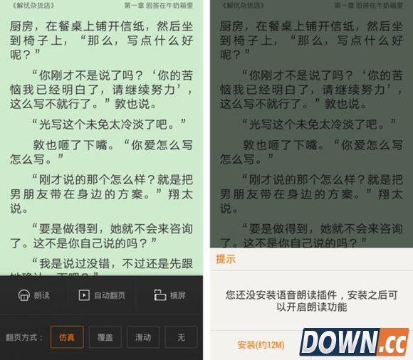 例如阅读界面中,我在“阅读设置”甚至是“高级设置”里找了很久,想换一种翻页的动画…在快要放弃的时候,竟然发现它出现在“换个读法”里!
