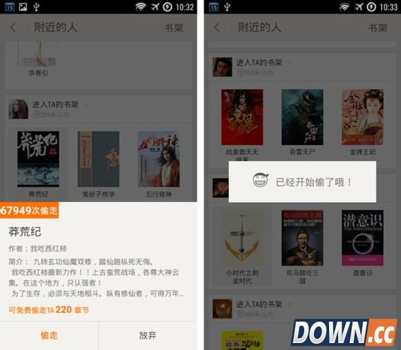 其实这是基于定位信息的一项功能,找到身边看书的人,就可以从他那里“偷”走他正在看的书了,我已经打算跟踪公交车上那个看书看到700章的大叔了……