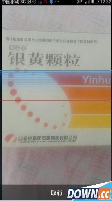 5、然后将要查询的药物的药盒放在手机镜头下 最好放置外包装 尽量不要放置药瓶