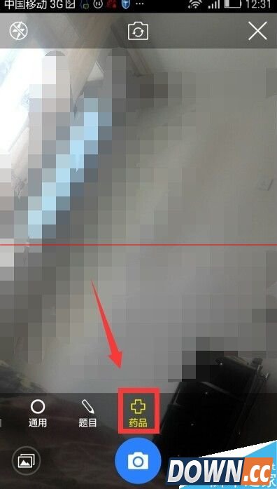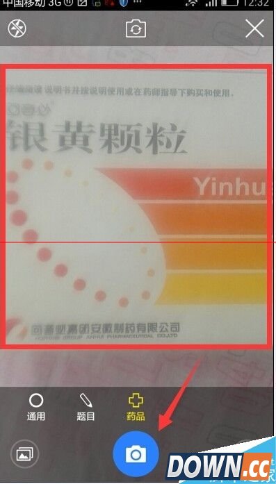 4、点按完二维码应用后界面会弹出照相机界面 点按界面下方的药品标志