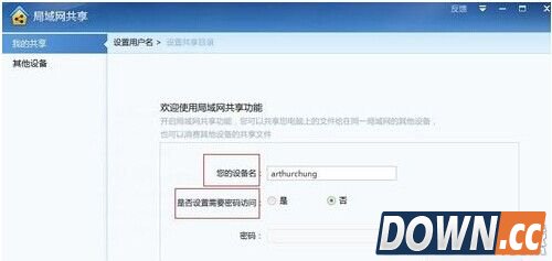 2、添加后,弹出移动共享页面,设置用户名,可以根据实际需要是否添加密码