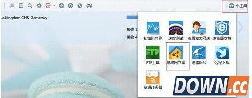 1、打开迅雷,在客户端右上角找到小工具,我们可以找到局域网共享这个应用并添加
