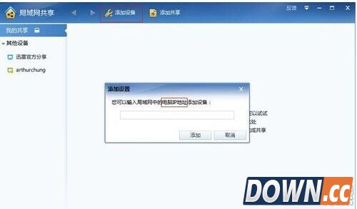 3、功能一:添加设备。可以添加同局域网的电脑,查看对方电脑共享的内容。找到添加设备,输入对方 ip,或者点击其它设备进行搜索