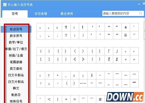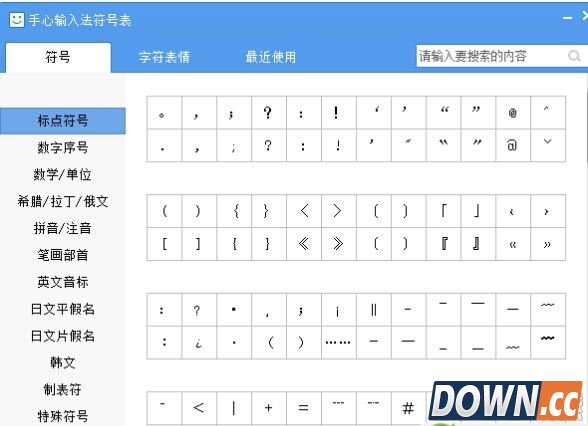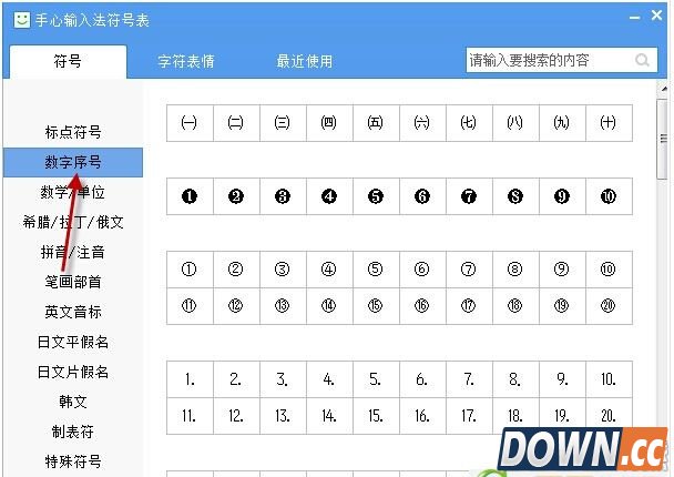 5、这里我们点击”数字符号“、”特殊符号“,可以看到每个类别下面有很多符号