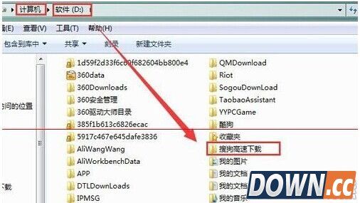 6、那么我们下载的东西究竟有没有在D盘的搜狗浏览器的目录下哪?我们打开d盘,找到搜狗浏览器下载。