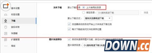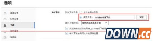 4、首先可以对文件下载的位置进行设置,系统默认的下载位置是与上一次的下载位置相同,所以我们可以调整一下。