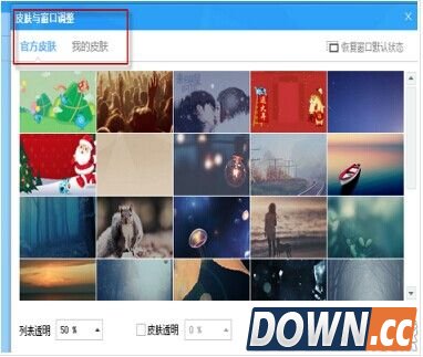 3、在弹出的皮肤与窗口调整窗口中点击《自定义皮肤》在打开你想要更换的皮肤。