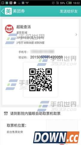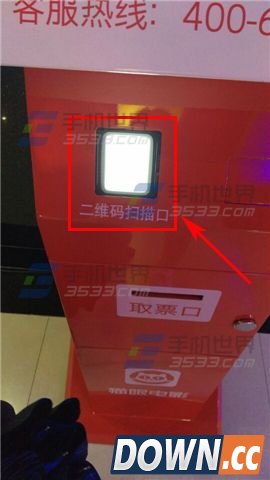 3)找到猫眼电影自助取票机,点击取票机屏幕上的【取票】按钮,此时左下角的二维码扫描口会亮起,拿起手机,把票卷中的二维码对准该扫描口,“滴”一声后,“取票口”处即会吐出电影票。当然还有一种方法就是在屏幕中点击“取票后”会有个验证码输入框,在框中输入验证码数字,如果在即将开场或者已经开场快关闭进入的时候,不提倡这种做法哦。(如下图)