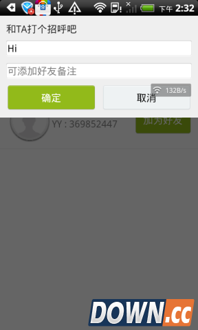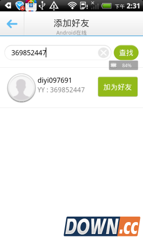 3、进入“添加好友”界面后就会提示你输入yy号查找接着点击添加好友,