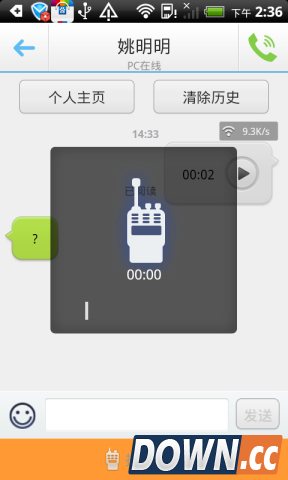 2、进入与好友聊天的界面(如下图)直接按住说话,说完后松开直接发送。