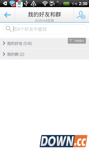 2、点击后进入了“我的好友和群”,继续点击屏幕右上角“添加好友”图标