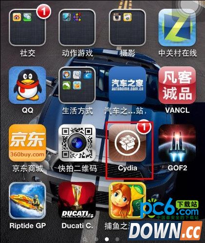 1.首先保证你的ios设备是越狱的,越狱成功后进入cydia(未越狱的可进入iphone越狱专区:http://www.pc6.com/z/iphoneyueyu/)。