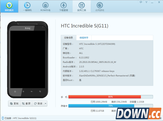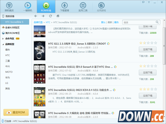 乐众刷机工具会自动识别手机信息,你找到G11的rom专区