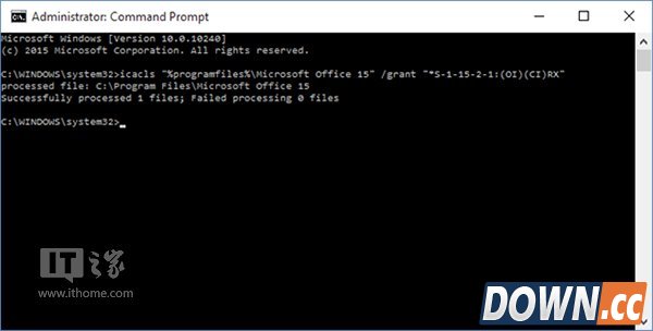 icacls "%programfiles%Microsoft Office 15" /grant *S-1-15-2-1:(OI)(CI)RX