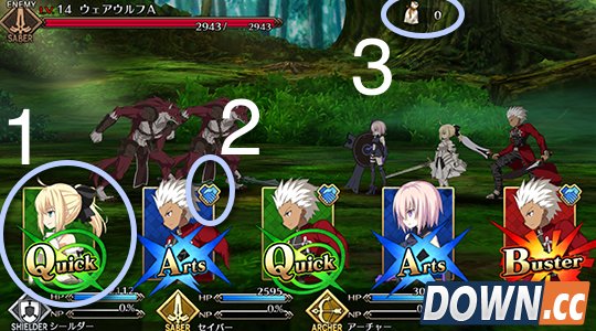 3蓝色卡,代表卡上的角色直接增加20%NP,而且获得NP更多